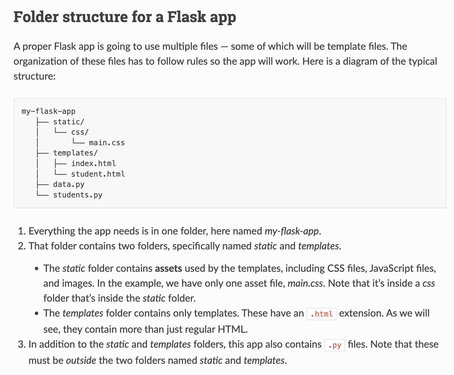 이 과정 전에 공식문서에서 Flask의 폴더 구조에 대한 글을 확인해보았다.