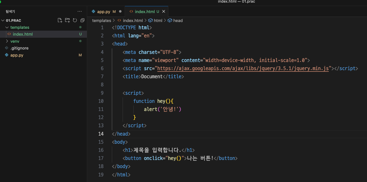이제 서버가 실행되는 상태에서 templates/index.html을