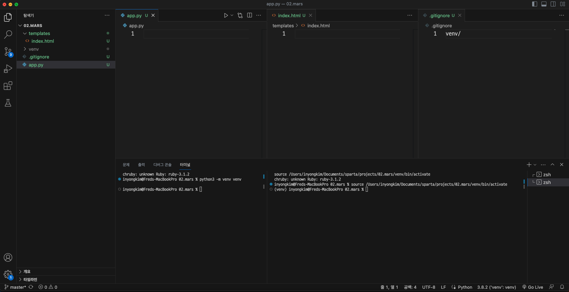 [Flask] Flask framework 미니프로젝트(project mars) 01 (초기 환경 구축)