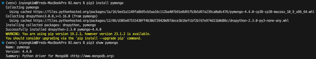 2. Python으로 MongoDB 사용하는 PyMongo package 설치