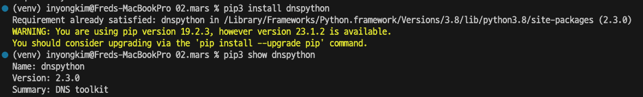 dnspython 2.3.0 설치 완료