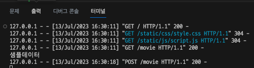 - app.py에서 '/movie' URL의 POST 방식 요청에 대한 메서드로 접근
