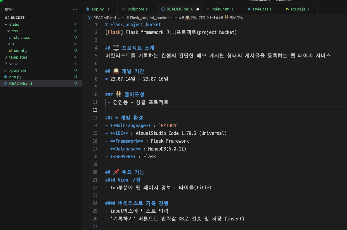 ohnyong 2023. 7. 14. 18:271. 프로젝트 sparta_project/(root)bucket/ 폴더 생성, app.py 메인 파일 생성