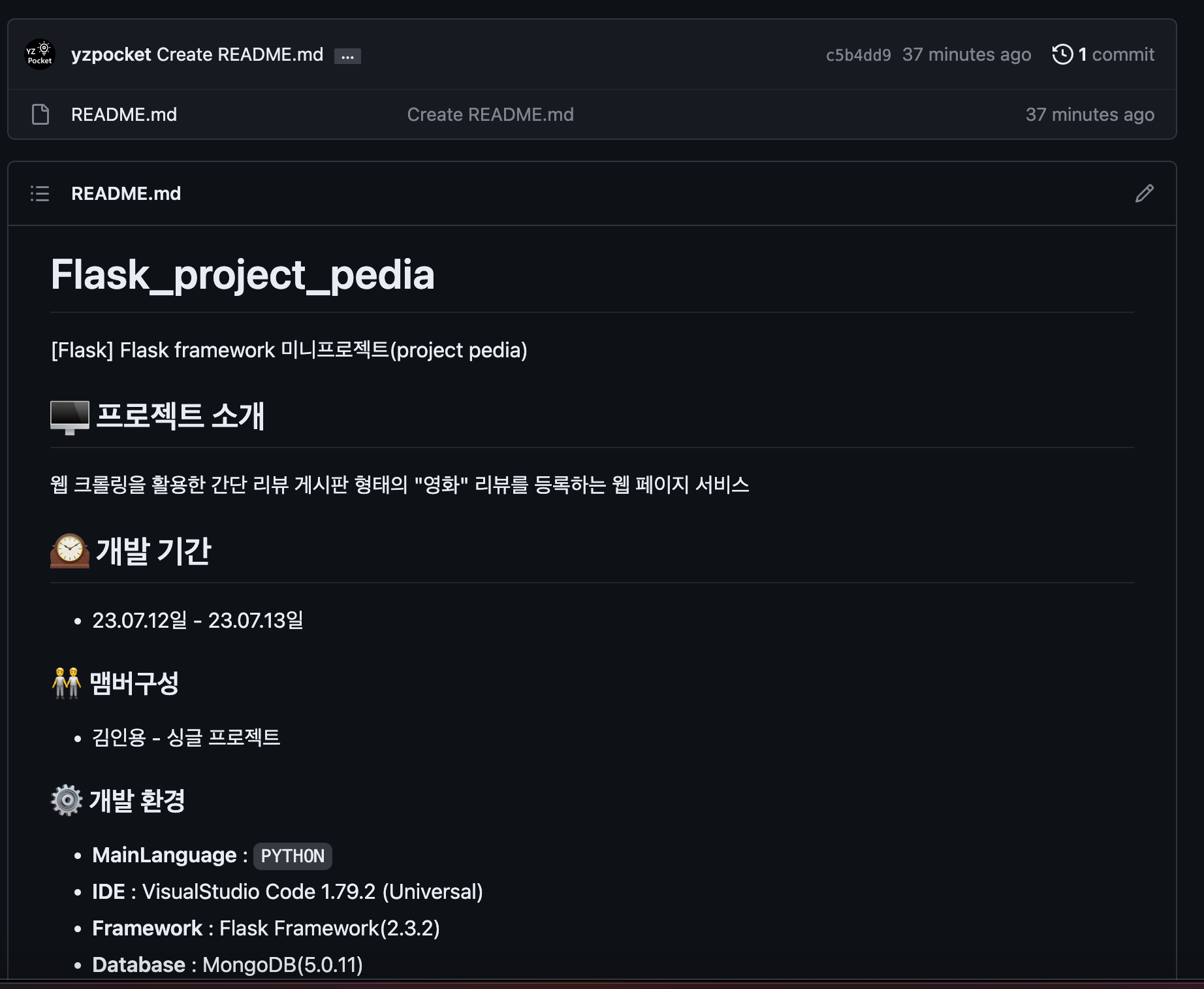 ohnyong 2023. 7. 16. 12:441. 프로젝트 sparta_project/(root)pedia/ 폴더 생성, app.py 메인 파일 생성