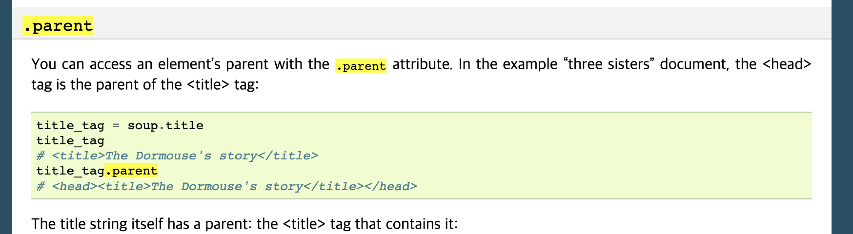 soup의 .parent 태그로 가는것을 찾아보았지만 역시 일단 find또는 select로 선택자를 특정해야한다. 분명히 쉽게 접근 할 수 있을텐데,