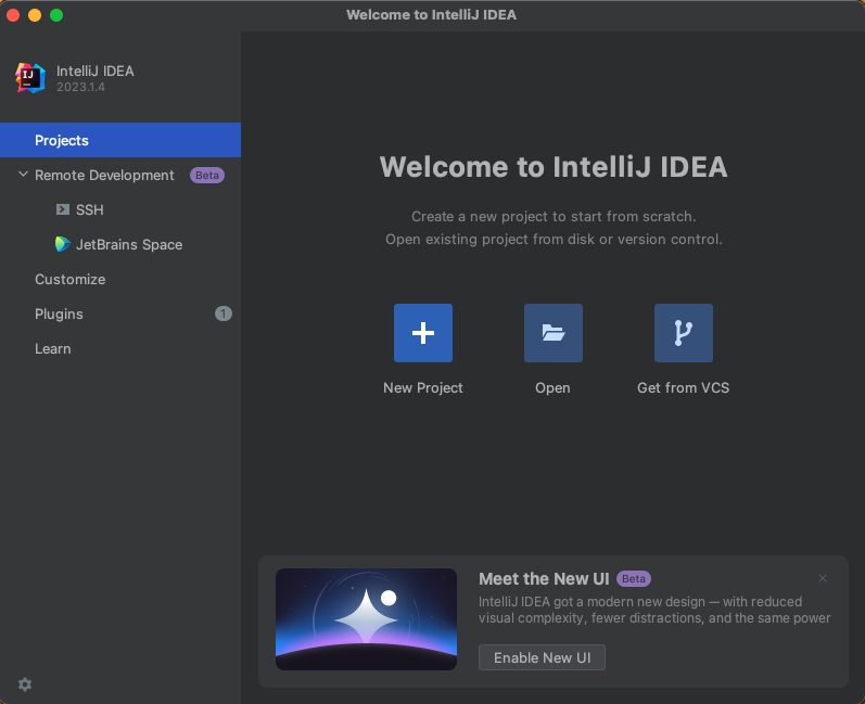 이전 Community 버전에서 실습하던 프로젝트를 그대로 가져온다. JDK 11버전으로 생성했던 기존 프로젝트의 JDK 버전을 변경 하면 호환에 문제가 있을 수 있다. 하지만 큰 실습을 진행하지 않고 세팅만 진행한 상태기 때문에 큰 문제는 없었다. 폴더를 Import하더라도 Git 연결상태, JDK 선택 상태를 확인해야 한다. JDK는 Homebrew로 설치한 JDK 17버전을 적용시켰다.